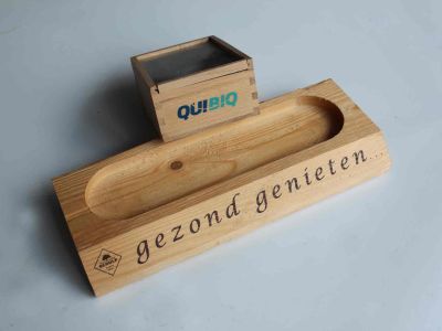 Hout bedrukken is een van de oudste ambachten die Heuvel Zeefdruk doet. Wij bedrukken houten producten, zowel gelakt als ongelakt. Denk dan bijvoorbeeld aan wijnkistjes, speelgoed, naambordjes, tafelbladen of brood- en kaasplankjes. Vaak betreft het houten product een relatiegeschenk.